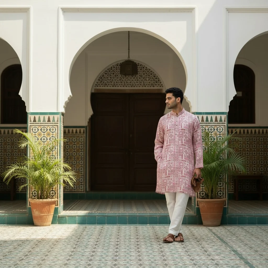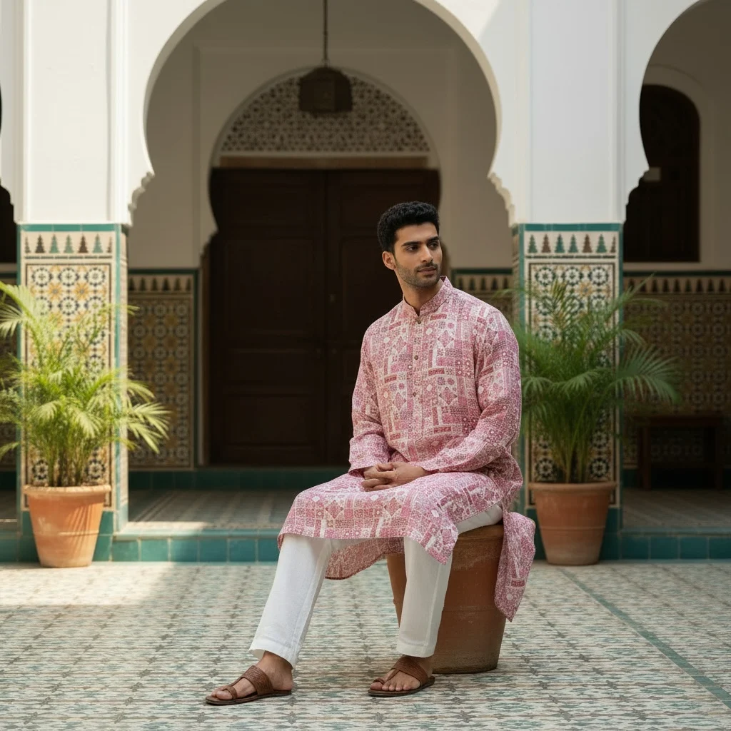 An ideal cotton silk printed kurta for Eid, this outfit is perfect for Ramzan gatherings, Eid prayers, weddings, and festive events. Its premium quality fabric, refined stitching, and timeless print make it a must-have premium festive kurta for men who value style and tradition.