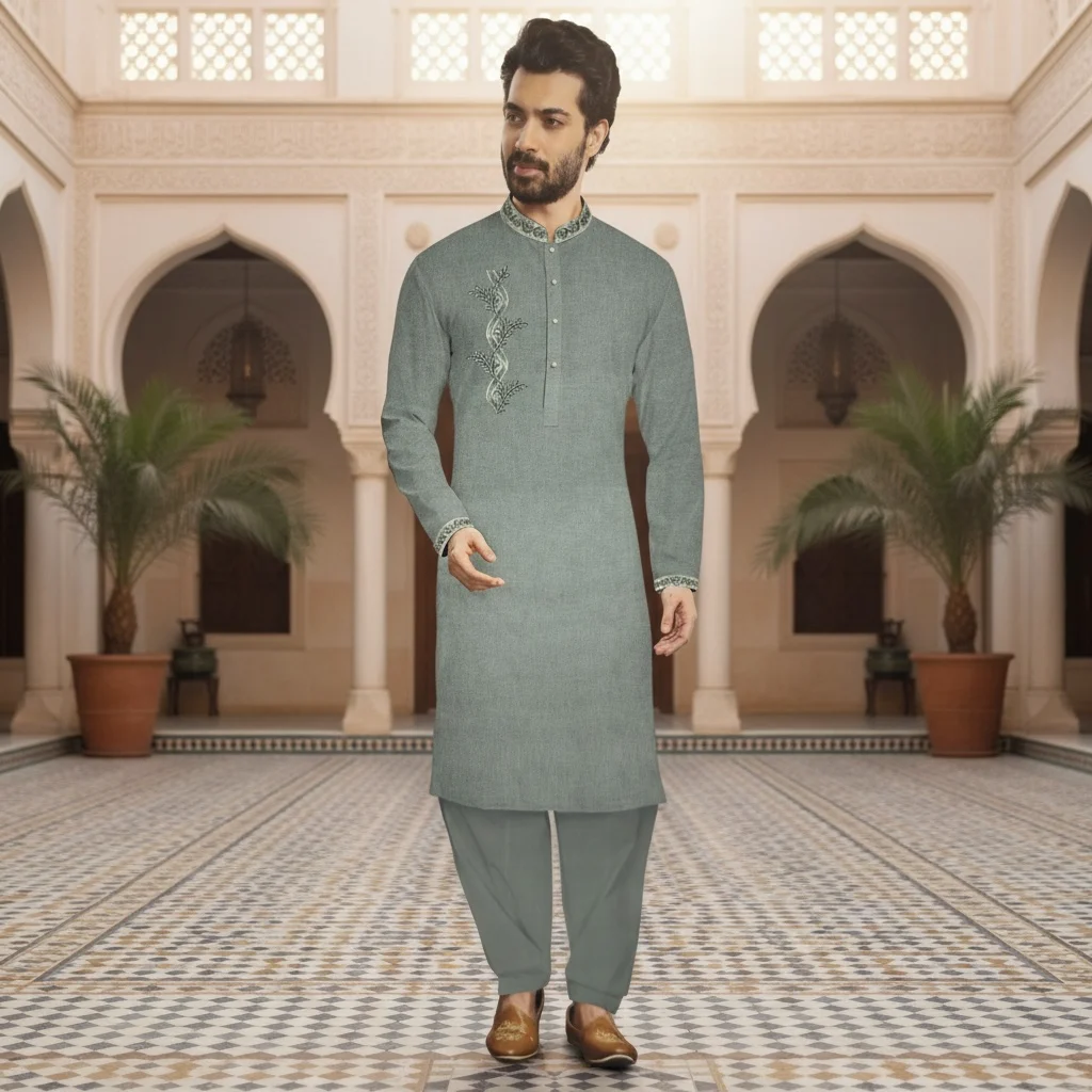 Upgrade your ethnic wardrobe with this Dusty Olive Green Cotton Linen Kurta Fabric, crafted for men who prefer subtle luxury with modern heritage appeal. Made from pure cotton linen, this unstitched kurta pyjama fabric set delivers breathable comfort with a structured, premium finish.