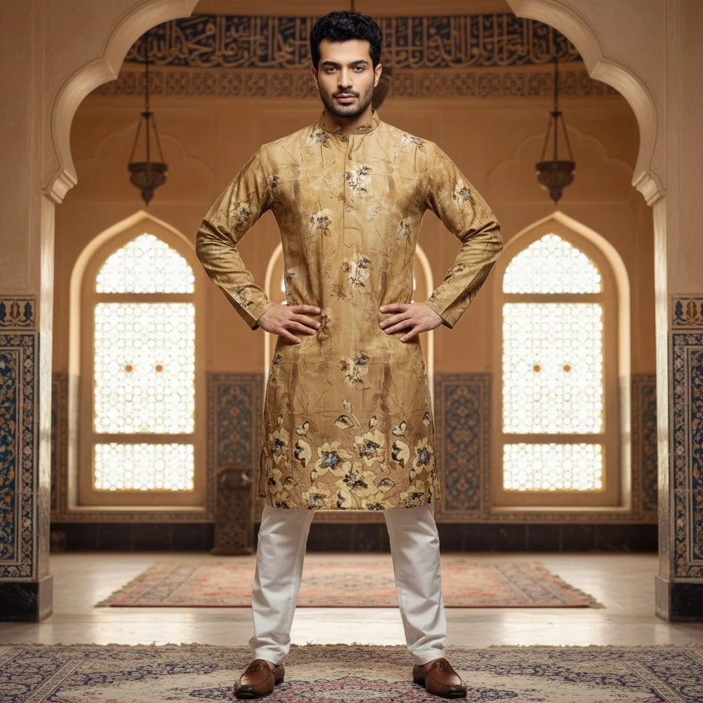 Golden Sandstone Brown Cotton Printed Kurta Fabric – Premium Unstitched Kurta Material for Men 2026 Golden Sandstone Brown Cotton Printed Kurta Fabric – Premium Unstitched Kurta Material for Men 2026