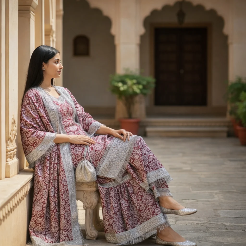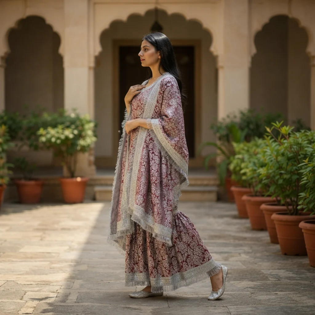 Maroon Net Chhaapa Sharara: The Essence of Tradition for Your Special Day
